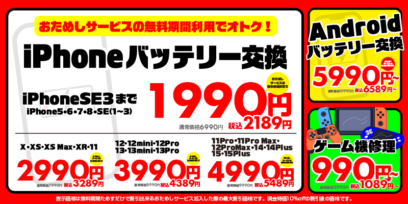 表⽰の最安価格はお客様の端末の症状や状況より価格が異なります。